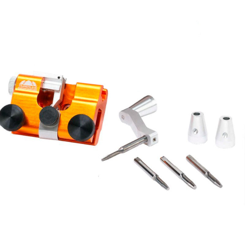 Ângulo frontal padrão de 30°, acessório de alumínio anodizado com manivela destacável e um conjunto de buchas de guia, pode ser usado para todas as motosserras