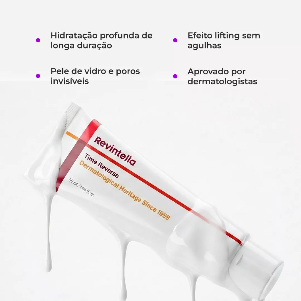 Graças à tecnologia de lipossomas triplos, o Revintella é absorvido em até 5 segundos, sem deixar a pele oleosa ou pegajosa. A fórmula inteligente atua nas camadas mais profundas da pele desde a primeira aplicação, garantindo um toque aveludado e visual mais jovem no espelho.